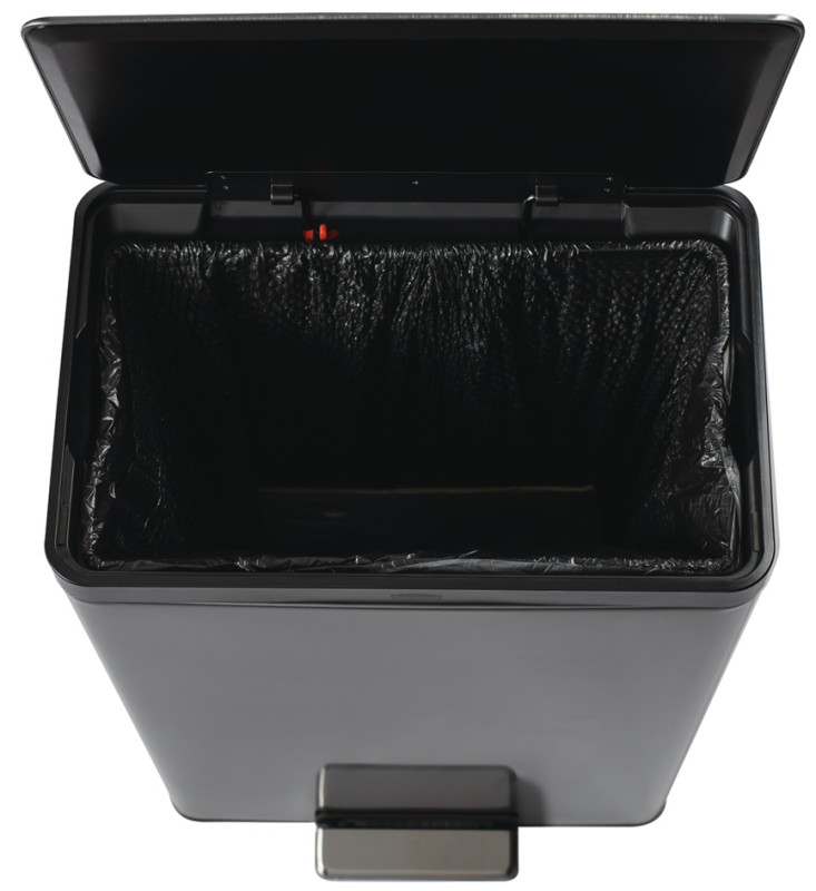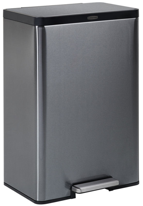 anthracite, en acier inoxydable, avec pédale sur le grand, côté, rectangulaire, fermeture lente du couvercle, la, technologie intégrée LinerLock fixe le sac au collecteur,, dimensions: (L)485 x (P)370 x (H)693 mm, (2112520)