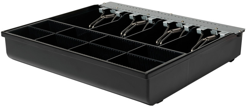 pour tiroir-caisse "SD-3540 Standard Duty",, 4 compartiments à billets avec pinces, garniture amovible, avec 8 compartiments à pièces réglables, avec fente, d'introduction, dimensions: (L)318 x (P)292 x (H)59 mm, (132-0428)