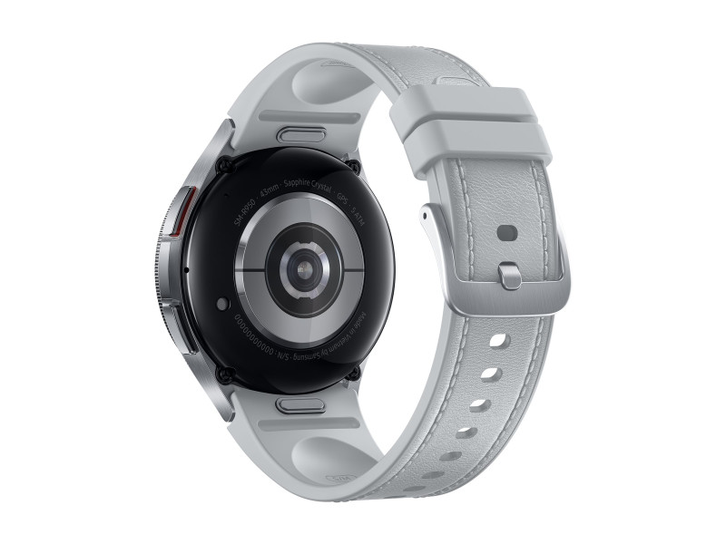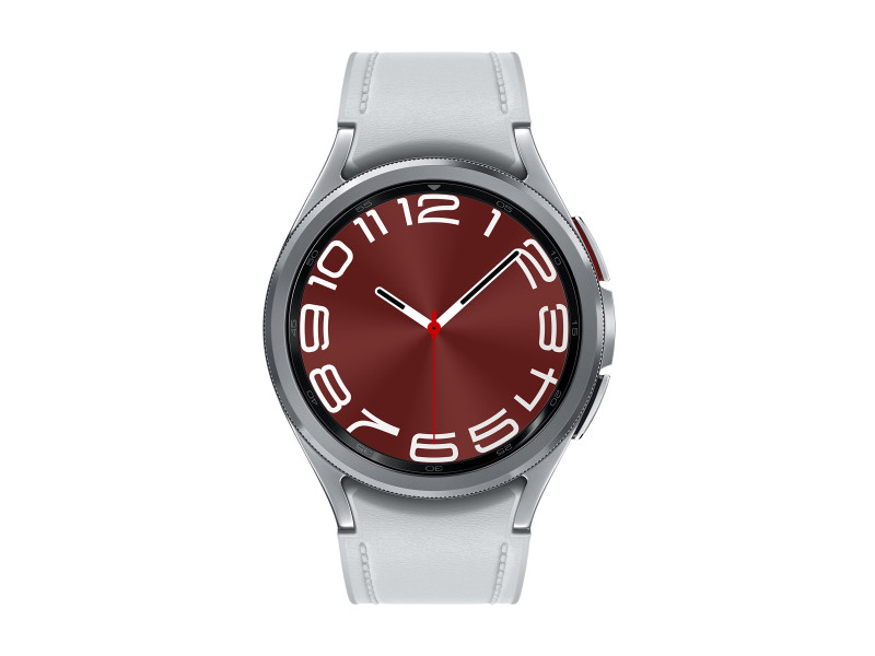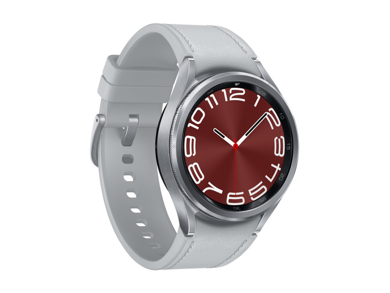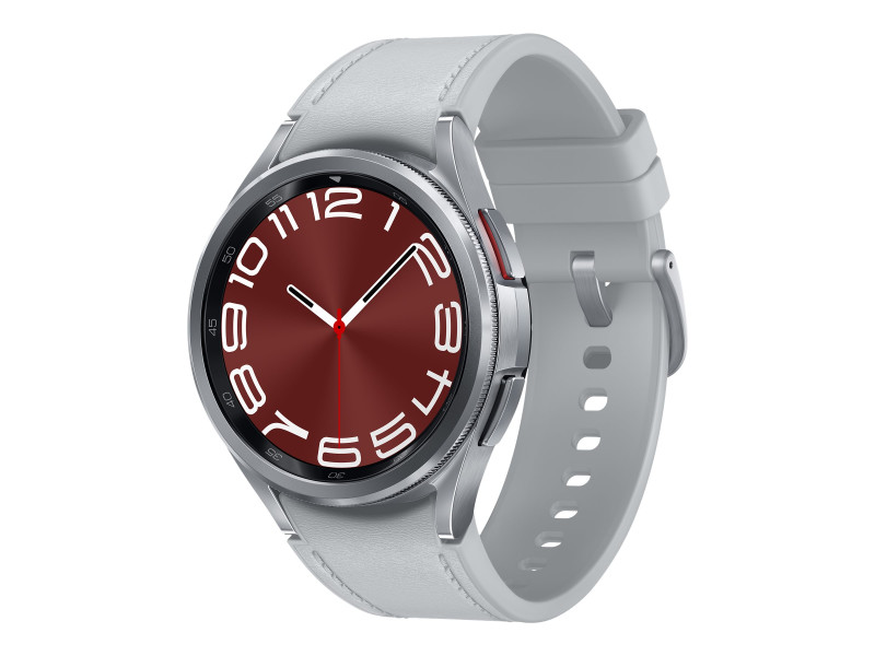Samsung Galaxy Watch6 Classic - 43 mm - montre intelligente avec bande - cuir écologique hybride - argent - taille du bracelet : S/M - affichage 1.3" - 16 Go - NFC, Wi-Fi, Bluetooth - 52 g - argent