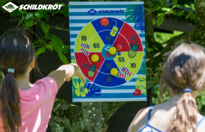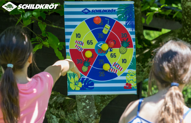 composé d'une cible à scratch enroulable imprimée des deux, côtés, (L)410 x (H)510 mm et 6 balles autoagrippantes,, assorti en 3x rouge et 3x jaune, (970143),