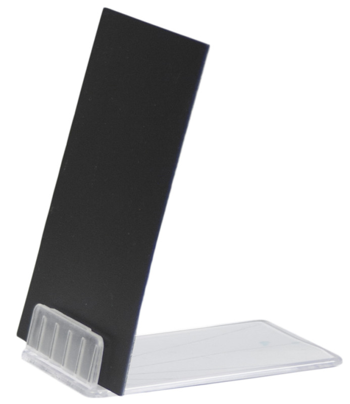 à double face inscriptible avec feutres-craies, à nettoyer, avec un chiffon humide, kit composé de: 20 x ardoises en A6, 1 x feutre-craie en noir, 4 x supports Spike, 2 x supports, acryliques, utilisable égalament comme présentoir de table, (TAG-A6-BL)