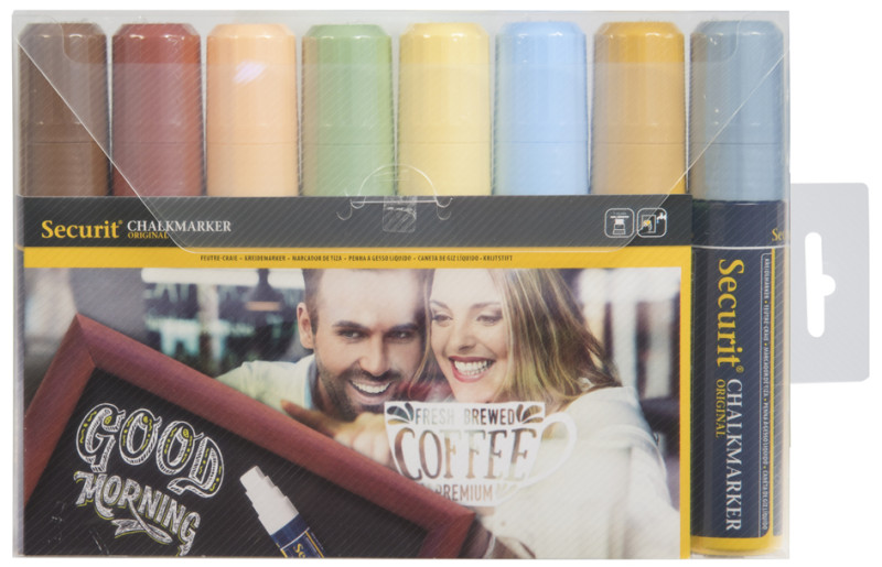 pointe biseautée, largeur de tracé: 7-15 mm, ne salit, ne, pâlit pas et résiste à la pluie faible, assorti en: blanc,, bleu, rouge, vert, jaune, rose, orange et violet, contenu: 8 pièces, (SMA720-V8)