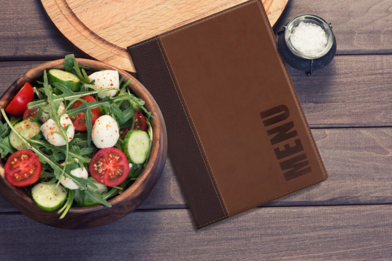 protège en plastique, imitation cuir, gaufrage: MENU, incl., incl. 1 double insert transparent pour 4 feuilles,, dimensions: (L)240 x (H)340 mm, (MC-TRA4-WR),