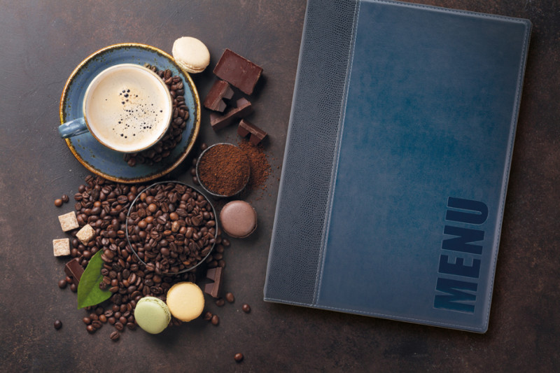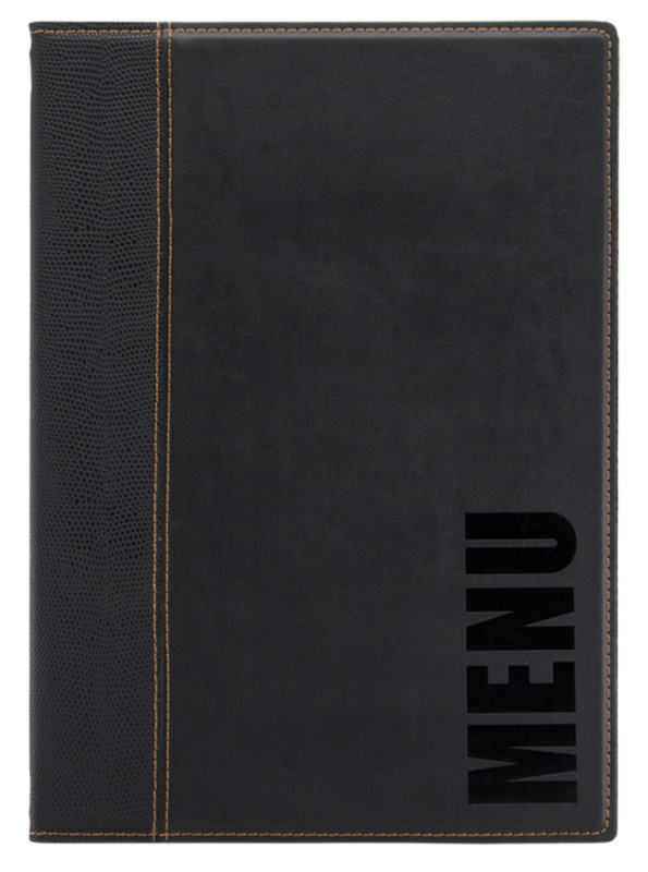 protège en plastique, imitation cuir, gaufrage: MENU, incl., 1 double insert transparent pour 4 feuilles, dimensions: (L)180 x (H)250 mm, (MC-TRA5-WR),