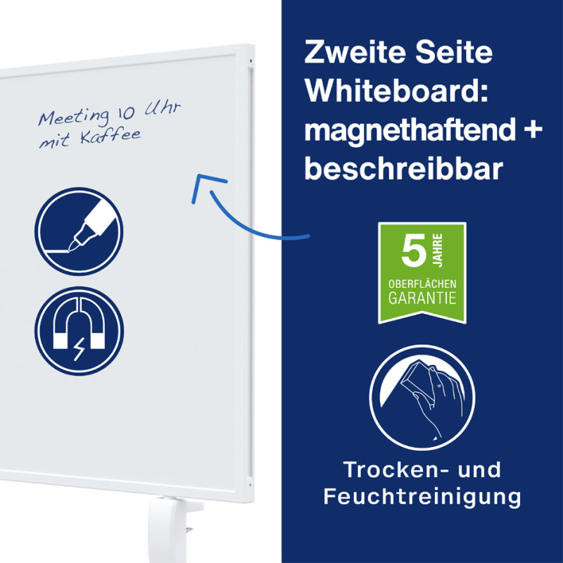 doppelseitig, eine Seite Whiteboard-Oberfläche - eine, Seite Filz-Oberfläche, Rahmen aus Aluminium mit weißer, Pulverbeschichtung, inkl. 2 Tischklemmen und Spannschloss,, Maße: (B)800 x (H)500 mm, (1108005)