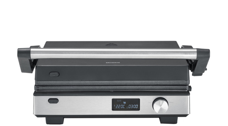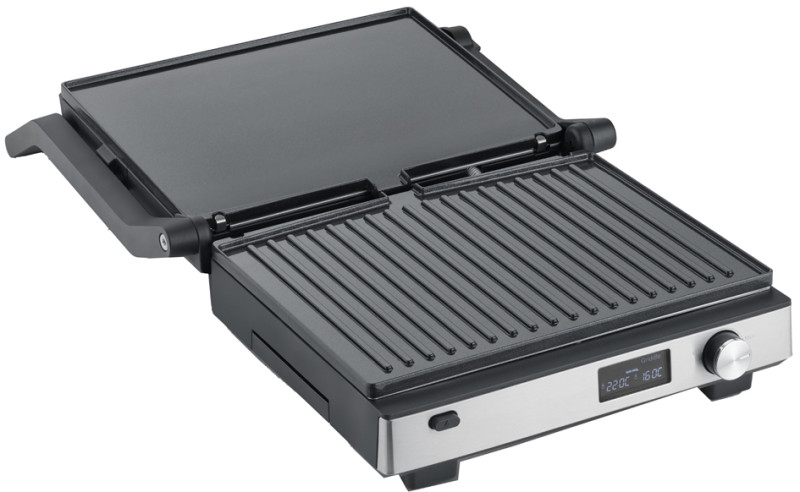 Leistung: ca. 2.000 Watt, Grillfläche: 290 x 230 mm, mit, 3 auswechselbaren Platten, stufenlose Temperaturregelung,, Maße: (B)385 x (T)350 x (H)370 mm, (KG 2380),