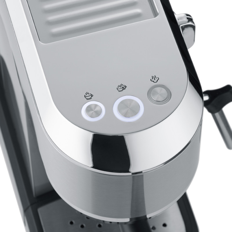 Leistung: ca. 1.350 W, für bis zu 4 Tassen Espresso,, italienische 20 bar ULKA Pumpe, einstellbare Temperatur, und Tassenfüllmenge, mit Milch-Funktion und Thermoblock-, Heizsystem, Maße: (B)165 x (T)450 x (H)300 mm, (KA 5997)