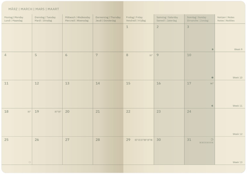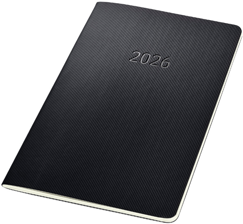 taille de la feuille: 135 x 210 mm, calendrier: 1 mois /, 2 pages, couverture souple avec surface rainurée en, en plastique, 64 pages, piqûre au fil, calendrier en, en alternance avec double page pour les notes,, (C2686)