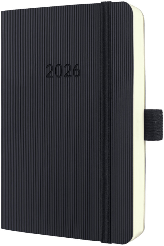semainier, 93 x 140 mm, 1 semaine/1 page gauche + page de, notes à droite, 176 pages dont 18 perforées, 80 g/m2,, couverture souple avec surface plastique striée, pages info,, motifs et planning, élastique de fermeture, (C2625)