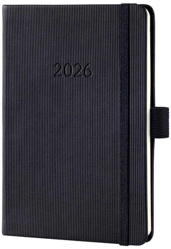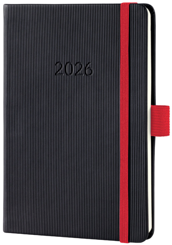 semainier, 108 x 151 mm, 1 semaine/2 pages, 176 pages, dont 18 perforées, 80 g/m2, couverture rigide avec surface, plastique striée, pages info, motifs et planning, élastique, de fermeture, dans les langues DE/GB/FR/NL, (C2665)