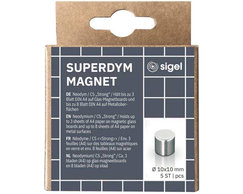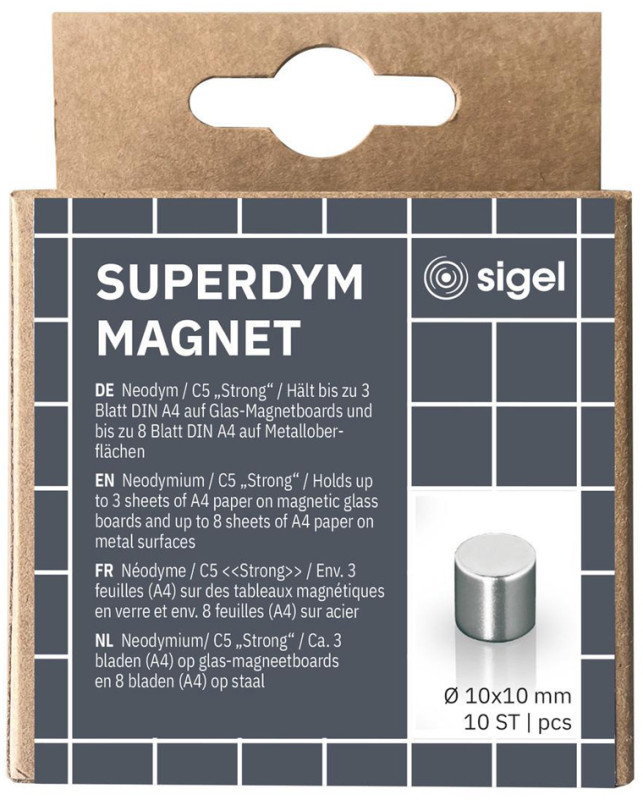 aimants spéciaux pour tableaux magnétiques en verre, "avertum", tient jusqu'à 8 feuilles A4 (80 g/m2), nickelé,, diamètre: 10 mm, hauteur: 10 mm, contenu: 5 pièces, (BA700)