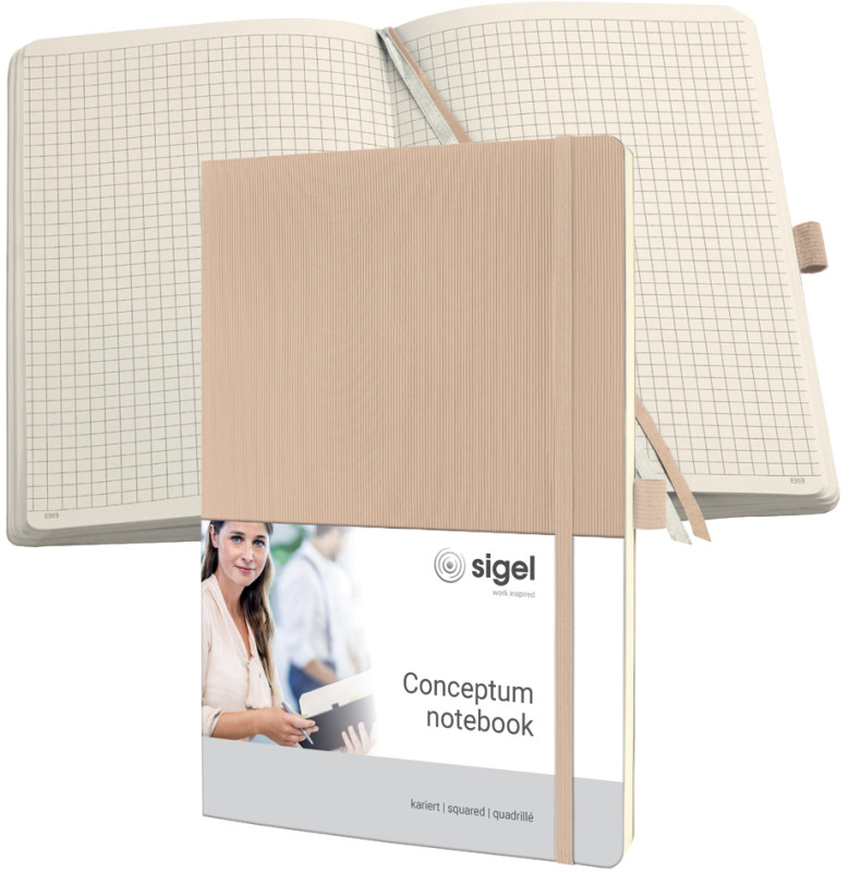 187 x 270 mm, surface élégante Softwave, couverture souple,, pages en chamois, 80 g/m2, avec bande élastique pratique, pour la fermeture, 2 signets et passant pour stylo,, 97 feuilles, 194 pages numérotées, (CO318)