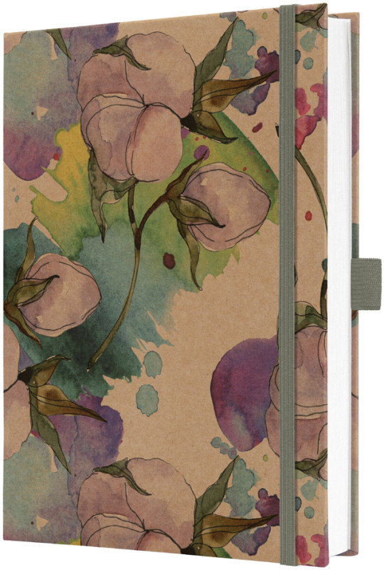 152 x 203 mm, papier blanc 100 g/m2, couverture rigide:, papier kraft avec motif imprimé, reliure cousue, 192 pages, (96 feuilles), avec élastique de fermeture, passant pour, stylo & signet, (JN855)
