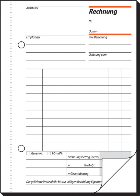 ---------------------- für den Markt: D --------------------, selbstdurchschreibend, 1. und 2. Blatt bedruckt, Feld für, Steuernummer und USt-IdNr., jedes Blatt mit Abheftlochung, und Microperforation, mit integrierter Schreibunterlage, (SD033)