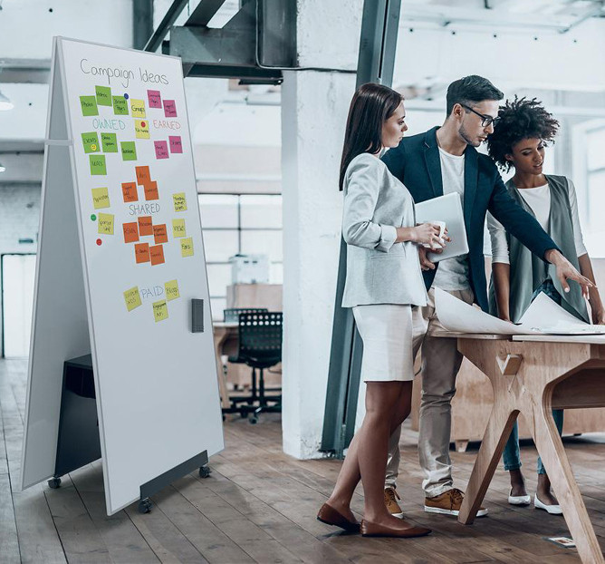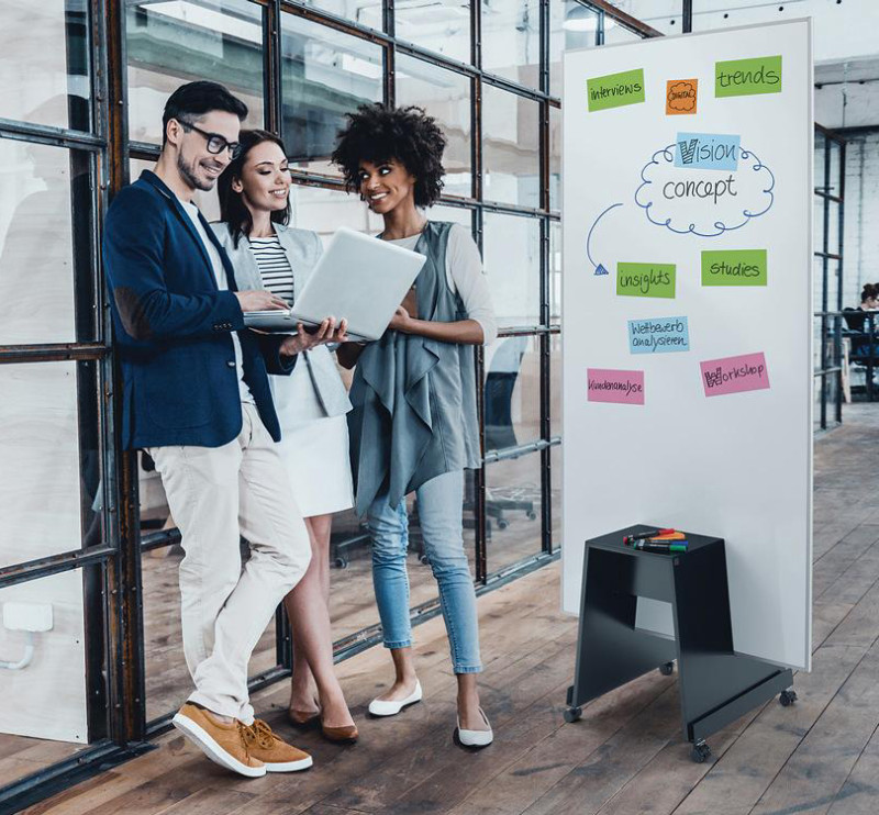 speziell für sigel agiles Pin- und Whiteboards meet up,, mit arretierbaren Rollen, für harte Bodenbeläge,, multifunktional nutzbar, aus pulverbeschichtetem Metall,, abnehmbare Ablageschale, abnehmbares Ablagebrett, (MU055)