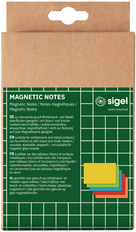 dim.: 100 x 150 mm, en papier magnétique et plastique, pour, toutes surfaces métalliques, 5x bleu, 5x jaune, 5x vert,, 5x orange, 5x rouge, découpable, nettoyable, dans un carton, contenu: 25 pièces, (MU103)