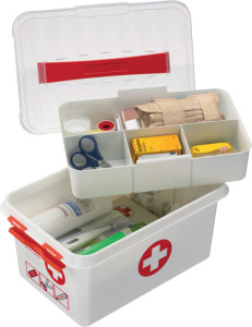 6 litres, dimensions: (L)300 x (P)200 x (H)145 mm, plastique, blanc, avec insert, en PP, conçu pour le rangement de, pansements et de médicaments, couvercle avec fermeture à, clic, empilable, impression Premiers secours en rouge, (H6164705)