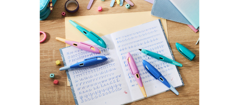 taille de plume : A, stylo ergonomique pour l'école, zone, de préhension antidérapante, angle de la plume réglable,, plume sertie, fenêtre pour visualiser le niveau d'encre,, livré avec 1 cartouche bleu roy, pour droitiers, (5014/6-41)