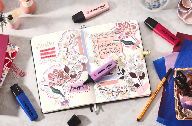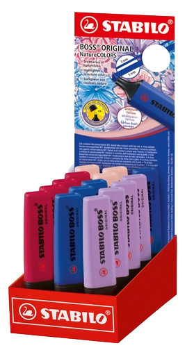 pointe biseautée, largeur du tracé: 2-5 mm, assorti en bleu, chardon, rouge dahlia, mauve glycine, rose pivoine, contenu: 15 surligneurs dans un présentoir, (70/15-6),