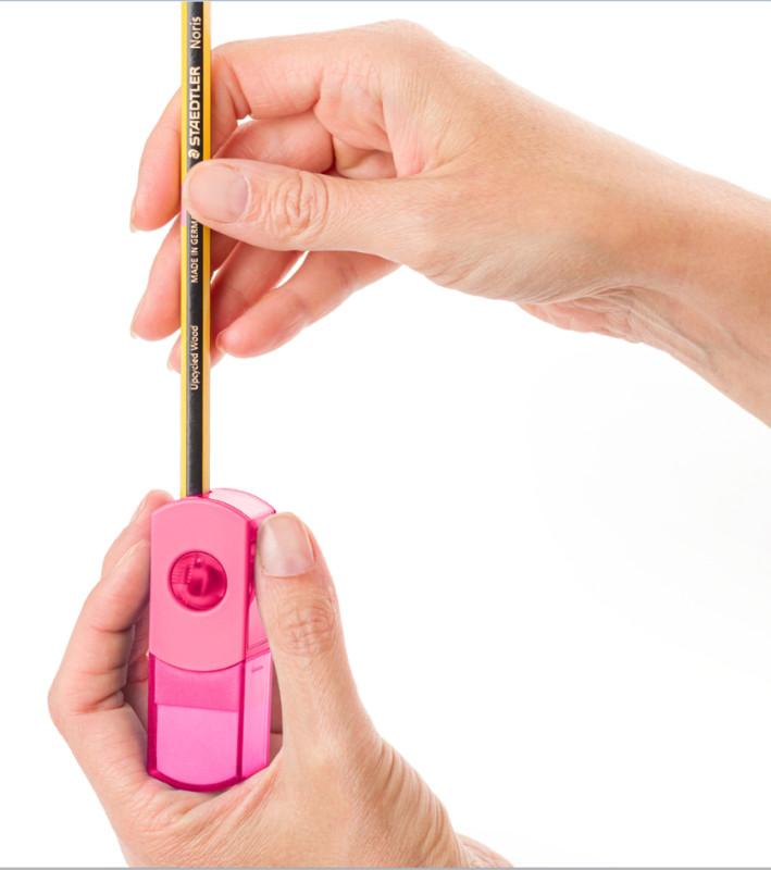2en1 : taille-crayon & gomme, pour les crayons jusqu'à, 8,2 mm de diamètre, angle de taille: 23 degrés, gomme en, blanc avec capuchon de protection, insert de taille-crayon, en métal, sur carte blister, (511-SE-F4BK)
