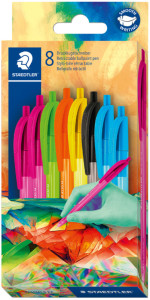 Kartonetui, mit dunklen Farbtönen, Strichstärke: M,, dreieckig, mit Druckmechanismus, Schaft, Drücker & Clip, aus Kunststoff, Schaft transparent in Schreibfarbe,, beinhaltet: 8 Stück, (4230C8E2-1)