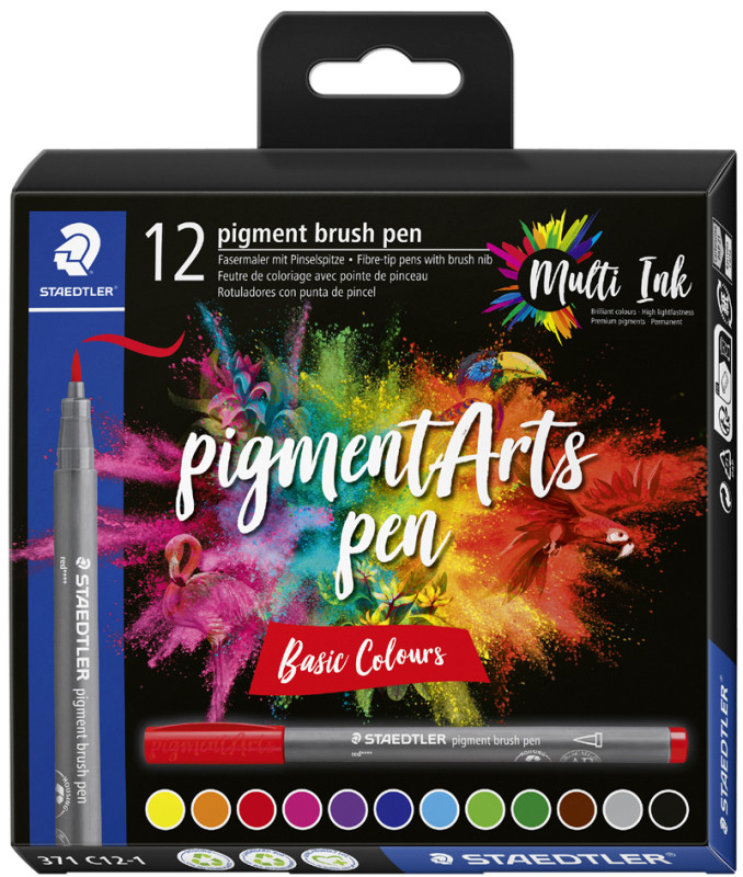 pointe de pinceau, encre Multi Ink, permanent & résistant à, l'eau, ne traverse pas le papier, ne coule pas, sèche, rapidement, corps en plastique recyclé à 97%, contenu: 12 pièces en étui carton, (371 C12-2)