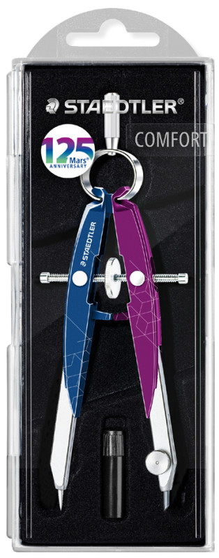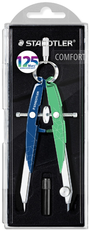 Spindelführung, Rundfederkopf, Mitteltriebsspindel,, aus Kunststoff / Metall, max. Kreisdurchmesser ca. 230 mm,, Länge: 154 mm, inkl. Ersatzteildose im Klappdeckeletui,, Farbe: blau/grün - 125 Jahre Jubiläumsausgabe, (556 00-M3)