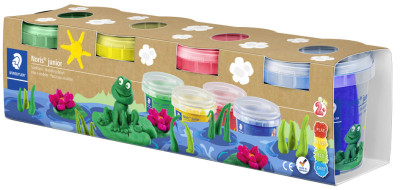 standard, carton de 4, ne colle pas, facile à laver,, durcissant à l'air, pâte à modeler en pots plastique, refermables, assortie en blanc, jaune, rouge, bleu,, contenu: 4 pièces de 130 g/ 100 ml,