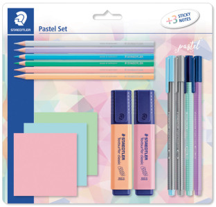 Contenu: 2x surligneur "Textsurfer classique COLORS",, 2x fineliner triplus pastel, 2x feutre de coloriage triplus, color pastel, 6x crayons de couleur pastel, 3x bloc-notes, couleurs pastel, sur carte blister, (61 SBK2 PA)