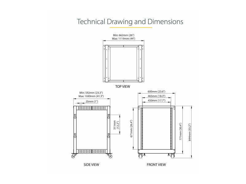 Le rack à cadre ouvert 15U vous permet de stocker vos serveurs, votre réseau et vos équipements de télécommunication dans un rack à cadre ouvert robuste et réglable en profondeur.