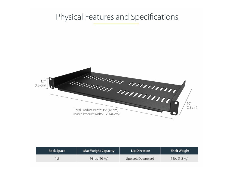 Fiche technique Startech : 1U VENTED RACK SHELF - 10 254 MM DEEP 1U SHELF - VENTED