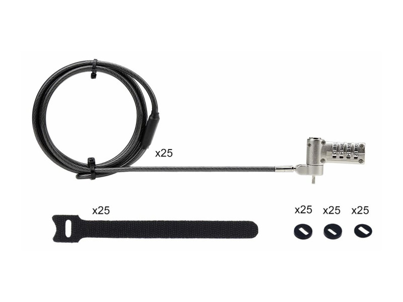 25 cadenas pour ordinateur portable, 25 sangles velcro, 75 entretoises pare-chocs, 25 guide de démarrage rapide