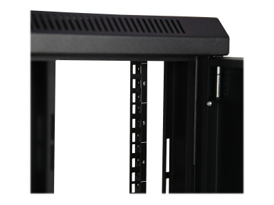 Ce boîtier rack serveur dispose d'une construction en acier extra-robuste, avec portes verrouillables pour toutes les entrées. Pour simplifier l'installation de l'équipement, les rails de montage du rack peuvent être configurés avec des orifices carrés et des écrous cage, ou des rails perforés.