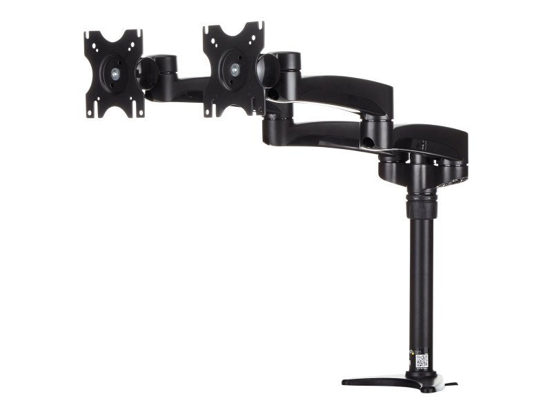 Le bras double pour bureau, qui accepte des écrans de 12 à 24 pouces jusqu'à un poids maximum de 13,6 kg par bras, supporte vos écrans facilement et comporte un système de gestion de câbles intégré pour maintenir votre espace rangé. Pour une flexibilité d'installation accrue, le matériel de montage inclus peut être soit fixé sur le côté de votre bureau ou de votre table, soit monté au travers d'un œillet, constituant ainsi une solution de montage à deux écrans polyvalente.