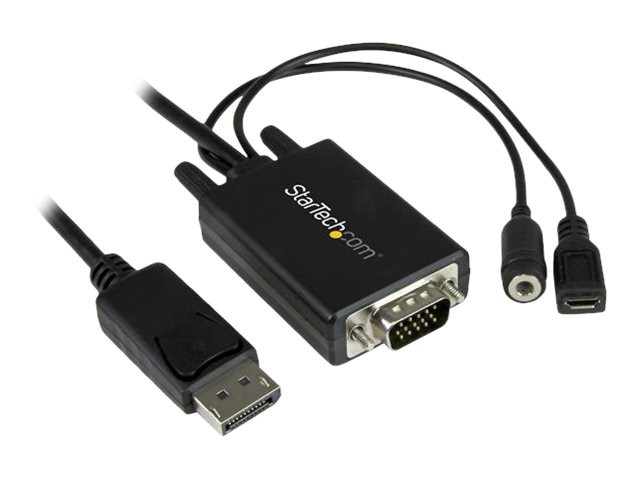 StarTech.com Câble adaptateur DisplayPort vers VGA de 2 m avec audio - Convertisseur DP vers VGA - M/M - 1920x1200 / 1080p - Adaptateur DisplayPort - DisplayPort (M) pour 15 pin D-Sub (DB-15), mini-phone stereo 3.5 mm, Micro-USB de type B (alimentation uniquement) - 2 m - noir - pour P/N: DK30CH2DEP, DK30CH2DEPUE