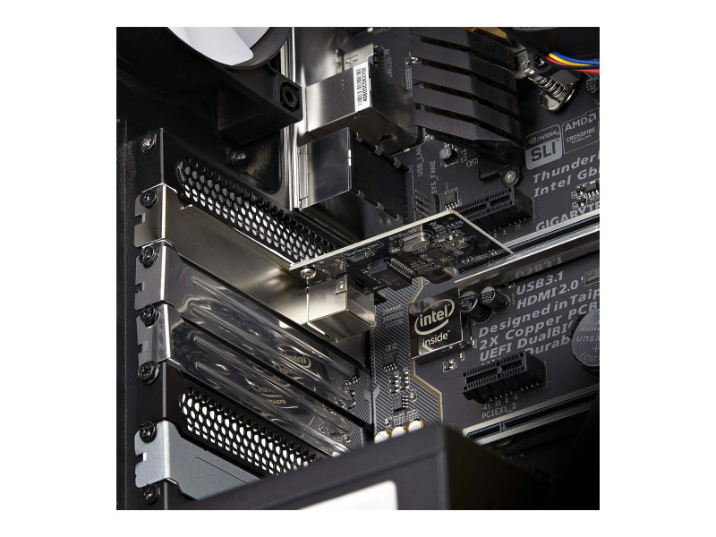 Cette carte d'interface réseau à 1 port est compatible plug-and-play, avec des pilotes qui s'installent automatiquement sur les principaux systèmes d'exploitation tels que Windows, Windows Server et Linux. Elle est compatible avec les plateformes matérielles Intel et AMD équipées de slots PCI Express x1, x2, x4, x8 ou x16.