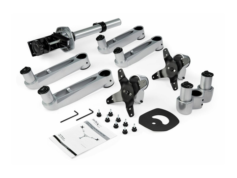 2 x montures de moniteur VESA, pince de bureau, coussin EVA, clip de gestion de câble, vis papillon, 4 x bras pivotants, épaule, ensemble de pôle, 2 x clés hexagonales M3