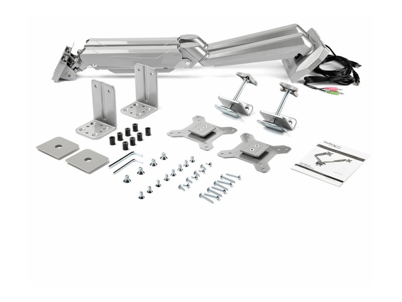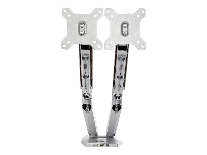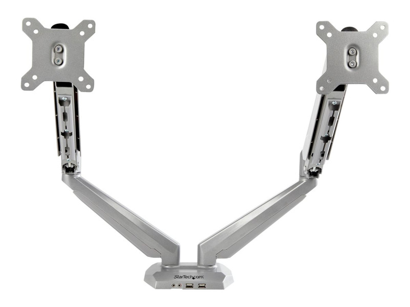 StarTech.com ARMSLIMDUOS Double bras pour écrans PC - 2x USB passthrough et 3,5 mm audio - Pour 2 moniteurs VESA de 38 cm à 81 cm - Kit de montage - bras réglable - pour 2 moniteurs - aluminium - noir - Taille d'écran : 15"-32" - montrable sur bureau