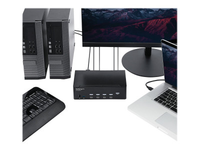 StarTech.com Switch KVM double affichage HDMI 4K 30 Hz à 4 ports avec hub USB intégré - Commutateur KVM HDMI de 4 ports (SV431DHD4KU) - Commutateur écran-clavier-souris/audio/USB - 4 x KVM / audio / USB - Montable sur rack