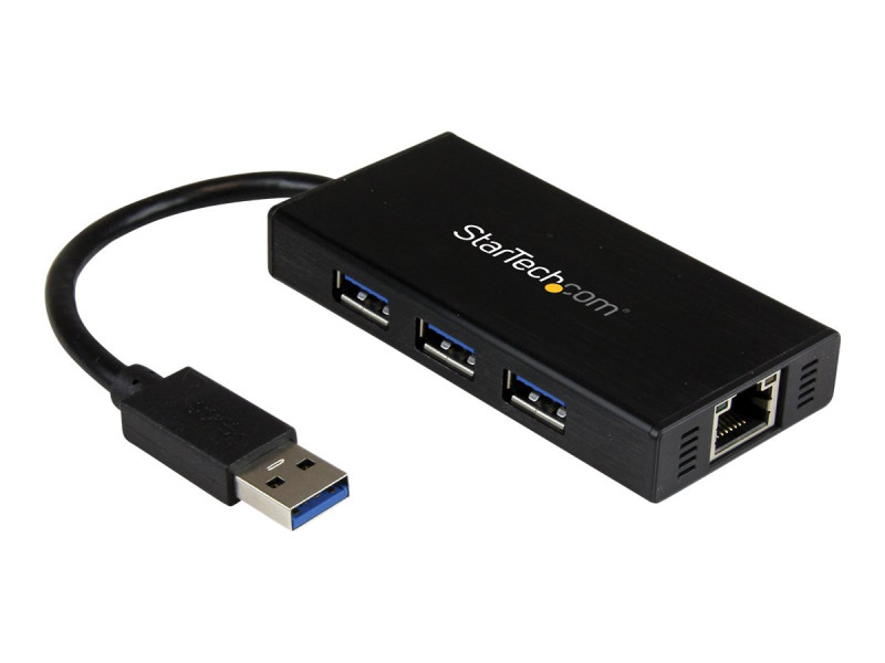 Hub USB 3.0 portable à 3 ports avec câble intégré - 5Gbps - Concentrateur USB 3.0 plus Gigabit Ethernet - Aluminium (ST3300GU3B).