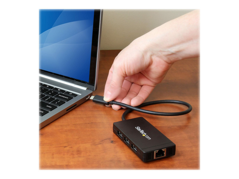 StarTech.com Hub USB-C à 3 ports avec Gigabit Ethernet - USB-C vers 3x USB-A - USB 3.0 - Adaptateur d'alimentation inclus - concentrateur (hub) - 3 ports