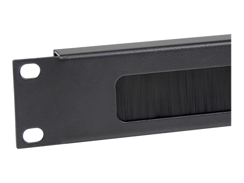 Faite d'acier de qualité supérieure sur lequel sont fixés des crins de nylon haute densité, la plaque à brosse 1U constitue un point d'entrée à l'aspect net permettant de trier les câbles pour une organisation simple. Le panneau à brosse favorise également la circulation d'air à travers le rack en fermant les espaces ouverts entre les équipements.