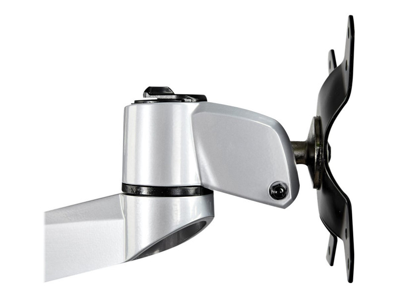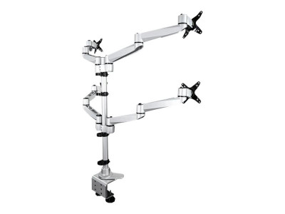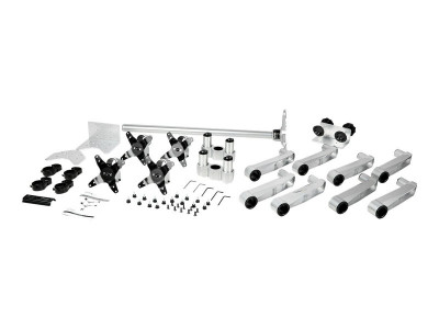 Créez un espace de travail ergonomique très productif grâce à ce support pour quatre écrans de qualité supérieure, d''une taille maximale de 27" chacun. Les quatre bras articulés à double pivot offrent une grande liberté de mouvement latérale. Sa finition argentée élégante ajoute une touche esthétique à votre espace de travail.
