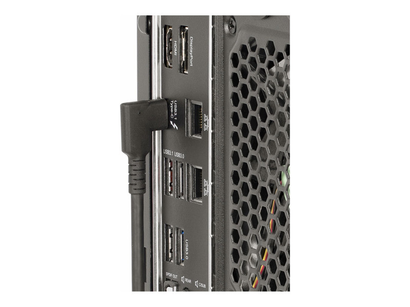 Connectez une source USB 10 Gbps et des périphériques, à l'aide de ce câble USB Type-C robuste à angle droit. Positionnez la connexion USB-C à angle droit le long de l'appareil pour réduire l'encombrement des câbles et éviter les tensions prolongées dues à la flexion. Il est idéal pour le transfert de données à 10 Gbps vers des périphériques de stockage externes compatibles USB-C, ou comme connexion à câble unique d'une station d'accueil USB-C à un ordinateur portable.
