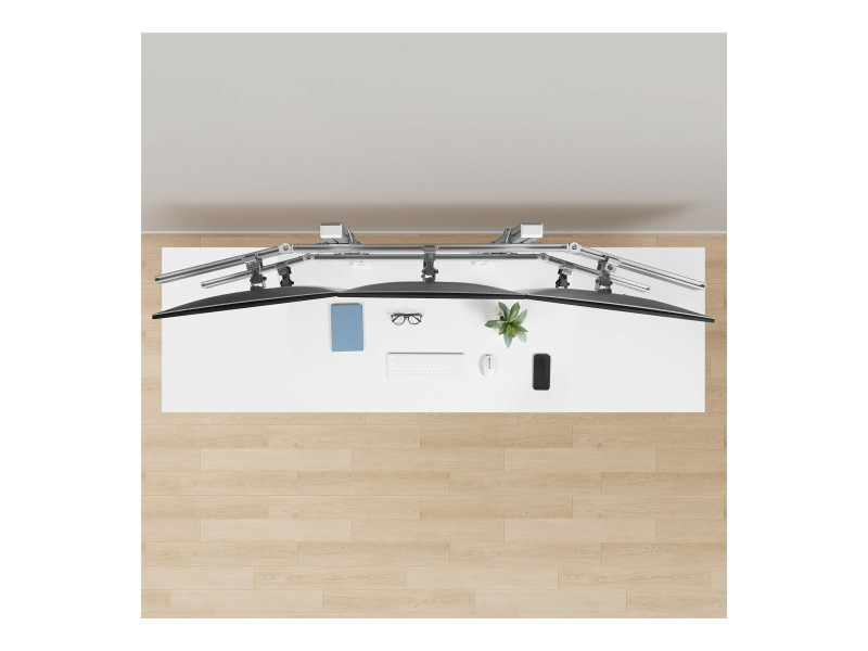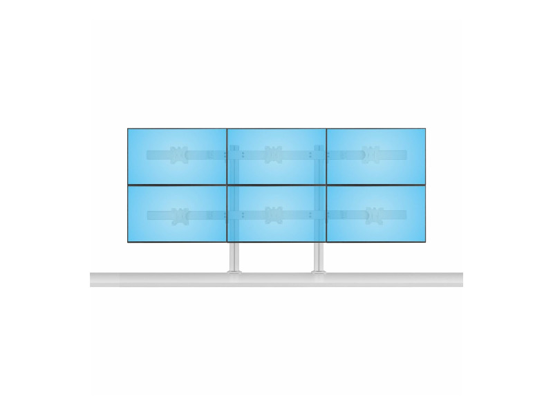 Support de bureau pour six moniteurs supportant des écrans jusqu'à 32" avec articulation et réglage en hauteur. Compatible VESA 75x75/100x100