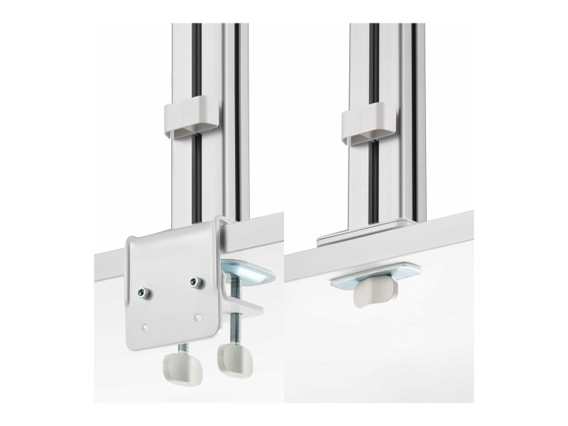 Le support offre deux options de montage : des serre-joints robustes pour des bureaux d'une épaisseur de 1 à 7,5 cm ou des montages par trou de passage pour des bureaux de 1 à 4,5 cm d'épaisseur.