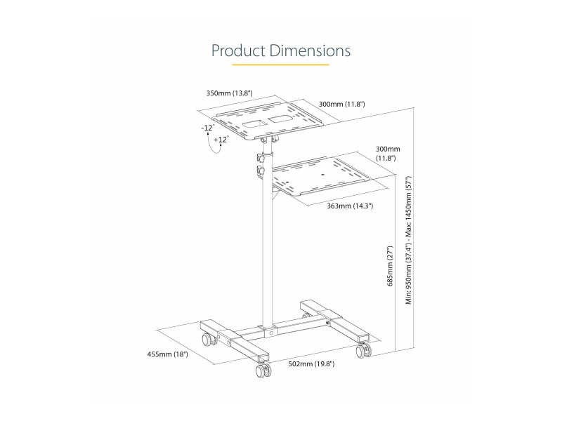 Startech : TABLE VIDEOPROJECTEUR et PC PORTABLE - HAUTEUR REGLABLE