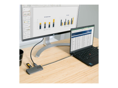 La station d'accueil portable permet de connecter un moniteur HDMI 4K 60Hz (4096 x 2160p), ou un moniteur ultra-large, à votre ordinateur portable, afin de créer une station de travail performante.