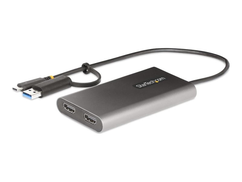 StarTech.com Adaptateur USB-C vers Double HDMI - 4K 60Hz - 100W PD - Adaptateur vidéo - Conformité TAA - USB type A, USB-C mâle pour 2 x 19 pin HDMI Type A, USB-C femelle - 30 cm - gris - support 4K, actif