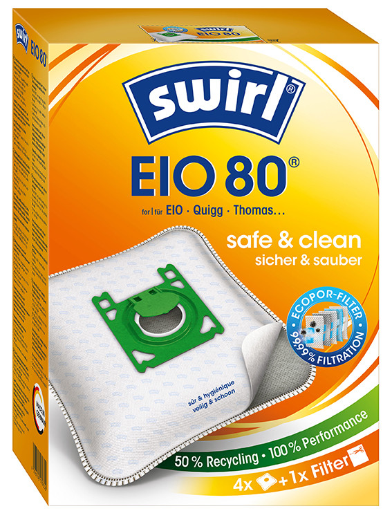 en microfibre, avec fermeture, aspiration maximale, retient#, la poussière fine d'allergène,, contenu: 4 sacs aspirateur + 1 filtre universel, (EIO 80),